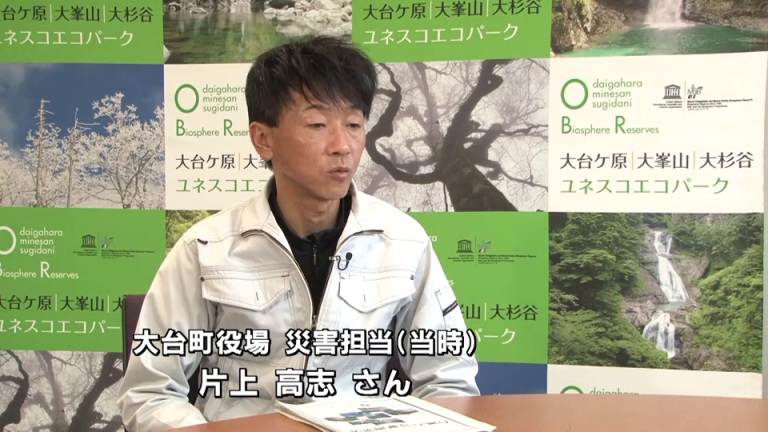 台風上陸前から降り続く雨により、役場に問い合わせのある土嚢の設置要請など、順次対応していた。しかし、次第に問い合わせが増え、さらに各地区から土砂災害などの報告が複数上がってきた。およそ1時間の出来事であった。
